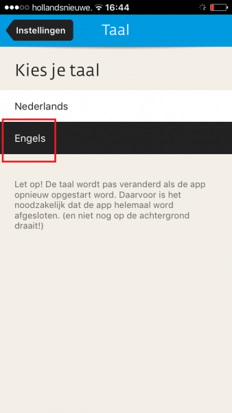 2) Na parte inferior da tela, selcione “Taal” que significa “idioma” em holandês