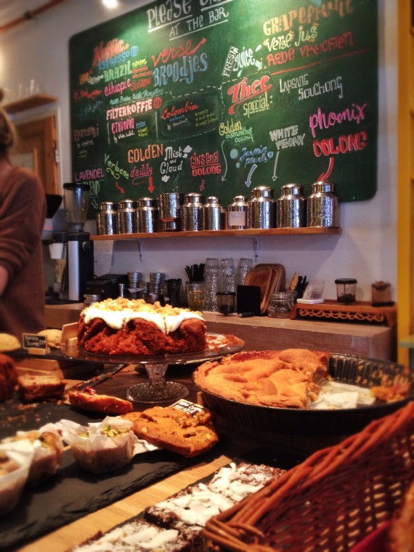 Se você estiver com fome na hora do almoço e procurar onde comer em  Amsterdam o Coffee Bru combina perfeitamente com você. Enquanto você caminha até esse café talvez você comece a pensar se de verdade vale a pena ir lá. O café fica numa região meio escondida, sem grandes pretensões. No entanto, quando você entra no local, já sente a “vibe” e imediatamente reconhece que o esforço valeu a pena.